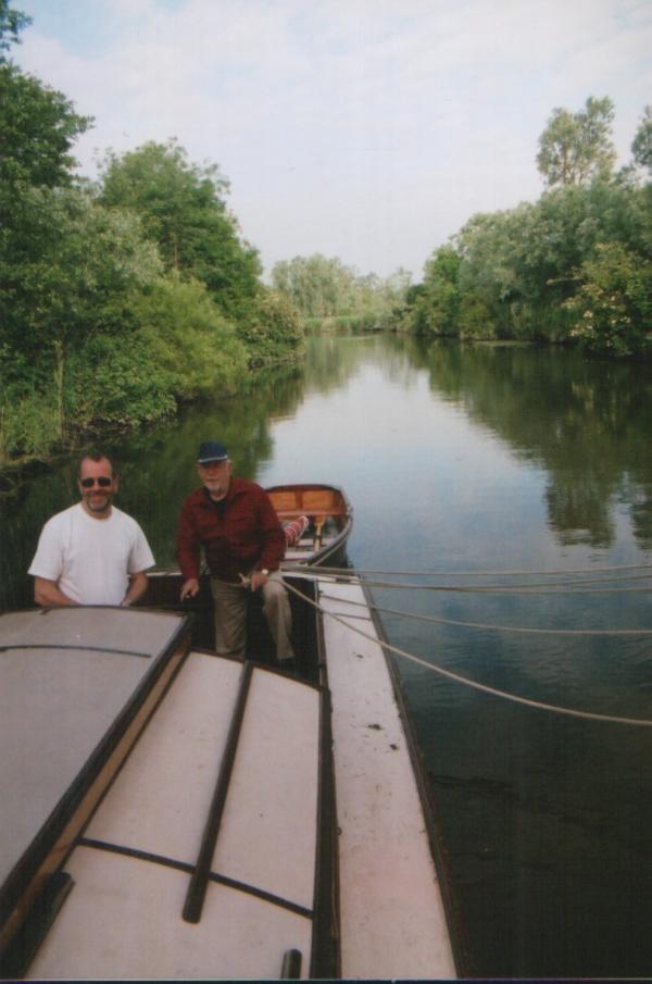 Sailing down the dyke to leave Surlinham Broad. David at the helm. 14th June 2005.
